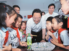 6月1日,武漢市武昌區(qū)為民小學(xué)。兩棵高大的榆樹在小小的院子灑滿了濃陰,一群孩子活蹦亂跳玩著游戲。省委書記俞正聲滿面春風(fēng)地來到了孩子們中間。