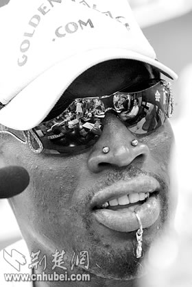 荊楚網(wǎng)消息(楚天都市報(bào))(記者門天清 實(shí)習(xí)生周玥廷 金天)昨日中午,有著8年NBA職業(yè)球員生涯,并擁有6枚NBA總冠軍戒指的前NBA巨星羅德曼一行從上海飛抵武漢,他將參加于今晚在漢舉行的“2005美國前NBA巨星王朝中國巡演”第一站的比賽。