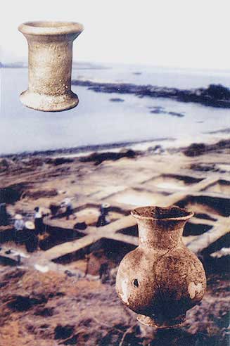 長(zhǎng)頸圈足陶壺:食器或水器(下,高26厘米)[相關(guān)鏈接]:20世紀(jì)中國百項(xiàng)考古大發(fā)現(xiàn)(1-20)21、大溪遺址(圖)22、城頭山遺址(圖)23、屈家?guī)X遺址(圖)24、崧澤遺址(圖)25、馬家窯遺址(圖)26、柳灣墓地(圖)27、牛河梁遺址(圖)28、城子崖遺址(圖)29、良渚文化遺址群(圖)30、石家河遺址群(圖)31、陶寺遺址(圖) 32、王城崗遺址(圖)33、齊家坪遺址(圖)34、卡若遺址(圖)35、石峽遺址(圖) 36、東灣仔北遺址(圖)37、圓山遺址(圖)38、二里頭遺址(圖)39、東下馮遺址(圖)40、夏家店遺址(圖)