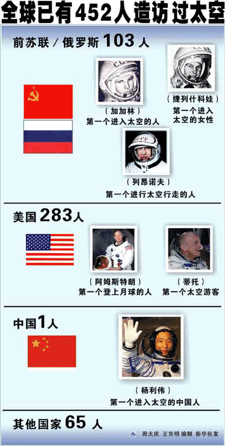 圖表:全球已有452人造訪過太空