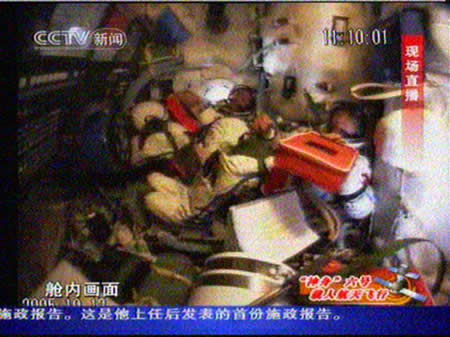 組圖:神六宇航員的第一頓“太空餐”
