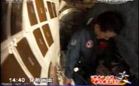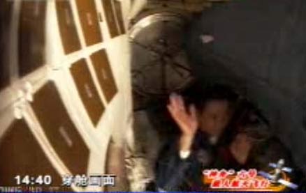 航天員準(zhǔn)備穿越軌道艙(來(lái)源于CCTV)航天員進(jìn)入軌道艙(來(lái)源于CCTV)航天員正穿越軌道艙(來(lái)源于CCTV) 航天員穿越軌道艙(來(lái)源于CCTV)