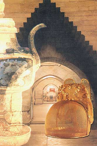 嵌玉龍、寶石金酒注:酒器(左,高21.8厘米) 金翼善冠:儀仗用具(右,高24匣米)[相關(guān)鏈接]:20世紀(jì)中國(guó)百項(xiàng)考古大發(fā)現(xiàn)(1-20)20世紀(jì)中國(guó)百項(xiàng)考古大發(fā)現(xiàn)(21-40)20世紀(jì)中國(guó)百項(xiàng)考古大發(fā)現(xiàn)(41-60)20世紀(jì)中國(guó)百項(xiàng)考古大發(fā)現(xiàn)(61-70)20世紀(jì)中國(guó)百項(xiàng)考古大發(fā)現(xiàn)(71-80)81、云崗石窟(圖)82、龍門石窟(圖)83、敦煌莫高窟(圖)84、龍興寺佛教造像窖藏(圖)85、隋大興唐長(zhǎng)安城遺址(圖)86、隋唐洛陽(yáng)城遺址(圖)87、隋代虞弘墓(圖)88、唐代帝陵陪葬墓(圖)89、法門寺塔基與地宮(圖)90、阿斯塔那墓地(圖)91、渤海上京龍泉府遺址(圖) 92、南唐二陵(圖)93、白沙宋墓(圖)94、遼陳國(guó)公主墓(圖)95、龍泉青瓷窯址(圖)96、耀州窯遺址(圖) 97、西夏王陵(圖)98、古格故城遺址(圖)99、元大都遺址(圖)100、明定陵(圖)