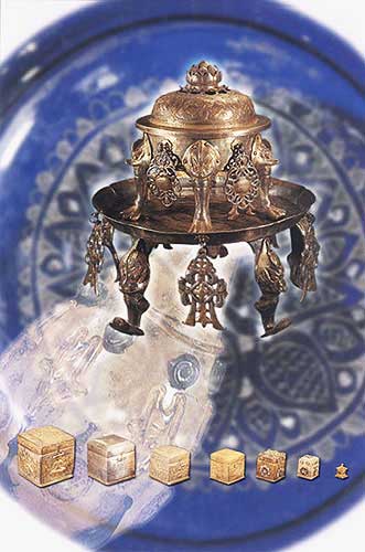 臥龜蓮花紋銀熏爐與雙鳳紋銀爐臺(tái):熏香器(上,通高29.5厘米)