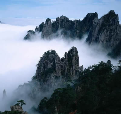 黃山是以自然景觀為特色的山岳旅游風(fēng)景區(qū),奇松、怪石、云海、溫泉素稱黃山“四絕”,令海內(nèi)外游人嘆為觀止。黃山有名的七十二峰,或崔嵬雄渾,或峻峭秀麗,布局錯落有致,天然巧成。天都峰、蓮花峰、光明頂是黃山的三個(gè)主峰,海拔高度皆在一千八百米以上,并以三大主峰為中心向四周鋪展,跌落為深壑幽谷,隆起或峰巒峭壁,呈現(xiàn)出典型的峰林地貌。