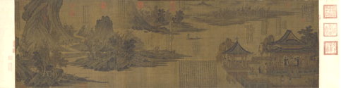 《十詠圖》卷,宋,張先繪,絹本,淡設(shè)色,畫心縱52cm,橫125.4cm。
