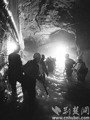 這是一群怎樣的鋼鐵漢子喲!他們兩年中遭遇38次突泥突水,每次大的搶險(xiǎn),都要持續(xù)數(shù)十小時(shí),每次都有10多人暈倒;從開(kāi)工至今,先后有20多名工人實(shí)在頂不住,走掉了,但絕大多數(shù)人沒(méi)有向困難低頭,選擇了繼續(xù)戰(zhàn)斗;在掘進(jìn)工作面上,除了機(jī)械設(shè)備,他們身邊還有50多套救生衣、救生圈,1萬(wàn)多條防水編織袋,甚至還有一只皮劃艇……