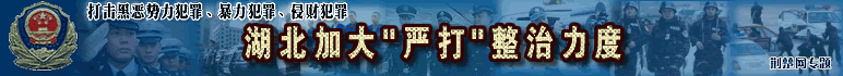 湖北今年嚴(yán)打目標(biāo)確定 省公安廳透露,去冬今春,我省社會(huì)治安大局穩(wěn)定,刑事發(fā)案率有所下降,今年將加大嚴(yán)打整治力度,重點(diǎn)打擊黑惡勢(shì)力犯罪、暴力犯罪、侵財(cái)犯罪……[詳細(xì)]::武漢警方突襲濱江明珠娛樂(lè)城 抓獲45名吸毒者 ::全省交警嚴(yán)查盜搶車 一假警車上查處9塊假車牌::湖北圈定106個(gè)治安整治重點(diǎn) 武漢市5個(gè)地段在列 武漢嚴(yán)打建筑工地惡勢(shì)力 [市政法委 各區(qū)舉報(bào)電話][把黑惡勢(shì)力趕出工地訪談熱線開(kāi)通]::武漢市政法委副書(shū)記:廣泛發(fā)動(dòng)群眾鏟除沙霸石霸::漢陽(yáng)鏟除沙石惡霸團(tuán)伙 行兇兩年作惡無(wú)數(shù)(圖)