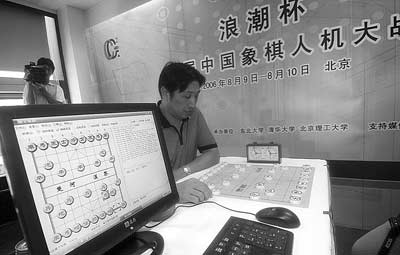 中國象棋特級(jí)大師柳大華在與計(jì)算機(jī)的對(duì)弈中。(新華社發(fā))