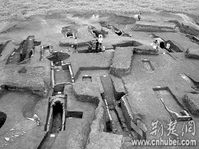 據(jù)了解,店子遺址是丹江口庫區(qū)首批由國家文物局批準(zhǔn)發(fā)掘的6個(gè)地下文物點(diǎn)之一。受省文物局委托,武漢大學(xué)考古系和武漢大學(xué)科技考古研究中心從去年3月開始對該遺址進(jìn)行發(fā)掘。此處先后發(fā)現(xiàn)有多座商代早期的土坑墓、一段古城墻以及商周至唐宋時(shí)期的古窯址13座;出土有卜甲、鬲、鼎、灶、青銅兵器等一批珍貴文物,為揭開夏商史上重大的實(shí)物資料。專家說,這基本上可以稱得上是一個(gè)“人類文明通史”遺址。武漢大學(xué)科技考古研究中心副教授陳官濤說:“我們已經(jīng)初步了解到遼瓦店子遺址是一處新石器時(shí)代到漢代的重要遺址。目前勘察發(fā)現(xiàn),龍山文化、夏、商、西周、春秋戰(zhàn)國到西漢文化,在此形成了一個(gè)完整的文化延伸系列。”