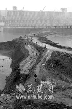 1993年10月,三峽工程一期圍堰在右岸開始施工。在中堡島左側(cè)及后河上下游修筑了一期土石圍堰,形成基坑。然后抽干基坑內(nèi)積水在圍堰保護(hù)下挖除中堡島,擴(kuò)寬后河修建導(dǎo)流明渠和混凝土縱向圍堰,為大壩建設(shè)做準(zhǔn)備。1997年7月,完成任務(wù)的一期圍堰被拆除。