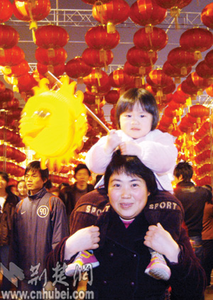 中山公園里,一對對情侶紛紛登上湖中的小舟,在燭光中許下愛情的誓言。25歲游客小敏舉著燈籠,偎依在男友的懷里,羞澀地笑著告訴記者:“今天我同意嫁給他了,這是我們金豬年最大的喜慶。”