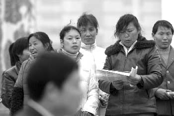 在武漢2007春季首場(chǎng)農(nóng)民工招聘會(huì)上,幾位來(lái)自黃梅的農(nóng)民工在私下討論:“今年招工才剛開始,要先比較哪家更好!