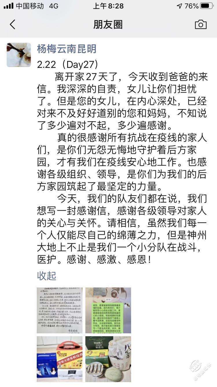 這樣一個(gè)團(tuán)隊(duì),只是無(wú)數(shù)個(gè)同樣戰(zhàn)斗在抗疫一線(xiàn)的湖北醫(yī)護(hù)的縮影,是無(wú)數(shù)個(gè)“前方有你,后方有我”的展現(xiàn)。作為一個(gè)和他們一起奮戰(zhàn)了28天的云南醫(yī)療隊(duì)隊(duì)員,我更能見(jiàn)證湖北的醫(yī)護(hù)人員第一時(shí)間的擔(dān)當(dāng),體會(huì)到他們后方家園默默的陪伴與支持。