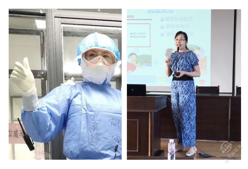 袁玲,市中醫(yī)醫(yī)院內(nèi)二科護(hù)師:讓我先上!理由很簡(jiǎn)單,第一,我年輕,身體好;第二,不想落在已赴一線老公的后面(偷笑)!