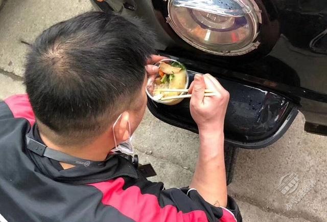 或站著或蹲著吃飯的戰(zhàn)“役”者隨處可見