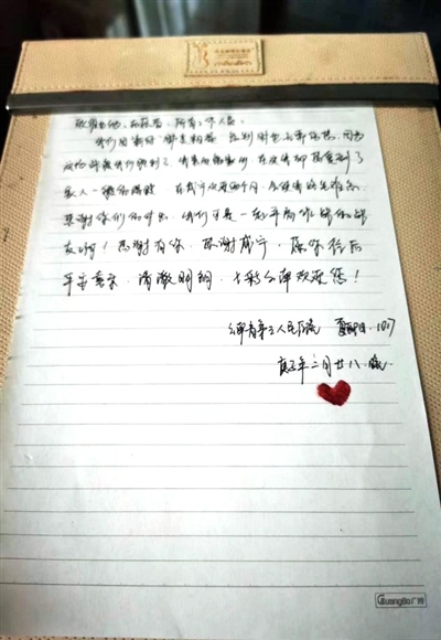 醫(yī)療隊(duì)隊(duì)員夏亞陽給維也納志愿者、所有工作人員留下一封信:我們因新冠肺炎相遇,離別時也無需傷感。因?yàn)檫@場戰(zhàn)疫我們勝利了。我雖遠(yuǎn)離家鄉(xiāng),在這里卻感受到了家人一般的溫暖。在咸寧近兩個月,會使我終生難忘,感謝你們的付出,我們科室一起并肩作戰(zhàn)的戰(zhàn)友??!感謝有你,感謝咸寧,愿往后平安喜樂、清澈明朗,七彩云南歡迎您!