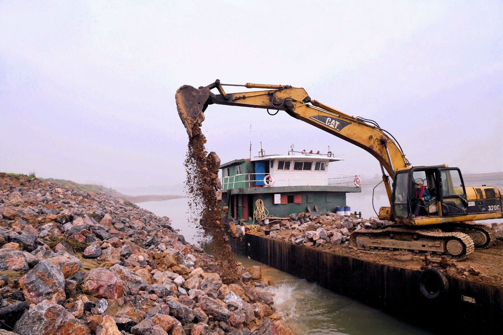 陸水河四清垸大堤全長450米,多年來的洪水侵襲致使河床下沉,堤岸崩裂。對此,赤壁市制訂了堤岸拋石護(hù)腳整治規(guī)劃。隨著疫情逐漸好轉(zhuǎn),赤壁市于3月18日啟動工程維修計劃,投入大量人力物力。隨著挖掘機(jī)鐵臂的揮舞,一塊塊巨石墜落在河岸,為大堤的防洪能力再加一道保險。