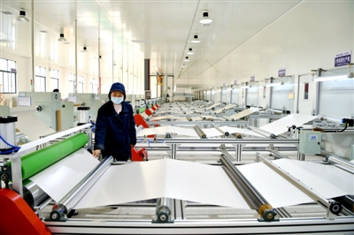 昨日,通城湖北平安電工材料公司車間內,工人緊張有序生產產品。劉建平攝