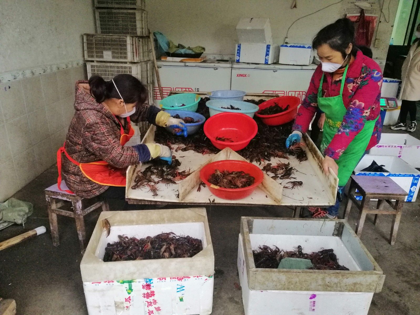 在官塘驛鎮(zhèn)泉口村神泉湖種養(yǎng)殖專業(yè)合作社,負(fù)責(zé)人童聰正在忙著將收購(gòu)來(lái)的小龍蝦進(jìn)行等級(jí)分揀打包,準(zhǔn)備發(fā)往全國(guó)各地。該合作社現(xiàn)在每天小龍蝦成交量3000斤左右,高峰期保持在1.5萬(wàn)斤,主要銷往江浙滬粵。