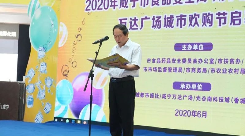 6月18日上午,在咸寧萬達(dá)萬達(dá)廣場舉辦“食品安全周,扶貧產(chǎn)品進(jìn)商超”啟幕儀式,市政府副市長吳剛,市政協(xié)副主席尤晉,市政府副秘書長廖朝輝出席活動。