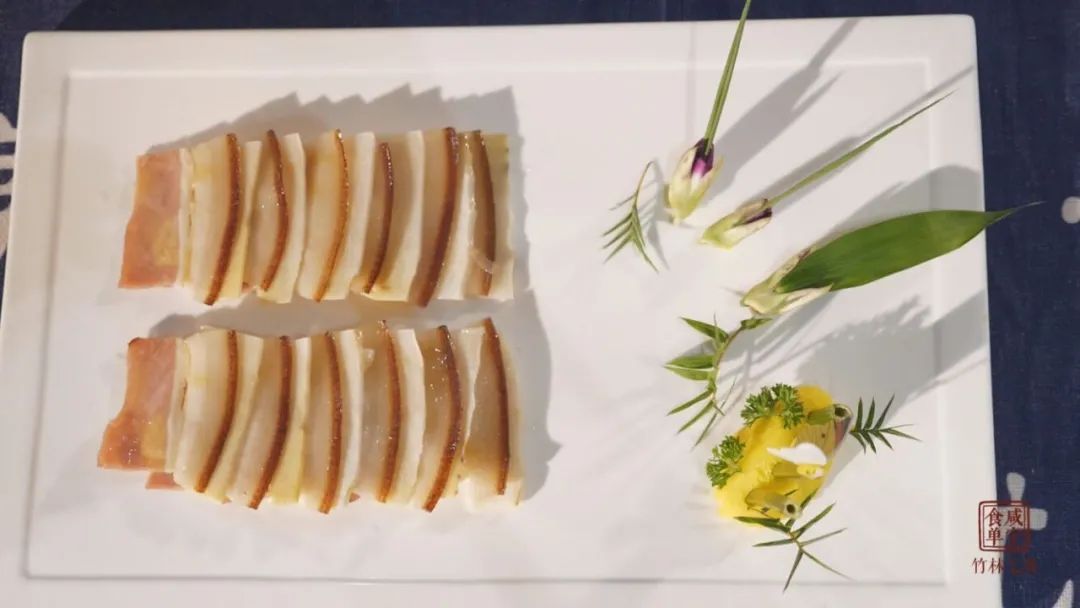 本菜采用咸肉和竹筍葷素搭配蒸制而成,菜名借用“咸”字諧音和竹筍的寓意而成。