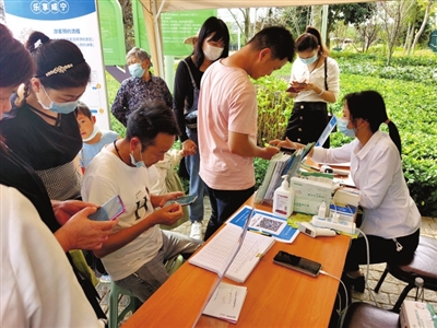 與此同時(shí),在官橋八組田野鄉(xiāng)村公園開心農(nóng)場(chǎng)景區(qū)門前,筆者看到檢票處排起了長(zhǎng)隊(duì),游客們正有序地核銷預(yù)約二維碼、測(cè)溫、登記完后陸續(xù)進(jìn)入景區(qū)。景區(qū)內(nèi)隨處可見拍照合影、嬉戲玩耍的身影,洋溢著一派歡聲笑語的熱鬧景象。