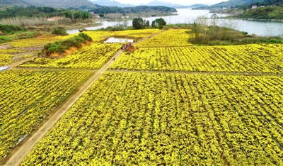 11月4日,通山縣燕廈鄉(xiāng)湖畔村皇菊種植基地,金絲皇菊怒放,猶如一張金色地毯舒展在田野上,村民穿梭在花叢中采收菊花。燕廈鄉(xiāng)湖畔村是典型的庫(kù)區(qū)貧困村,近年來(lái),市公共檢驗(yàn)檢測(cè)中心駐村工作隊(duì)和燕廈鄉(xiāng)黨委政府結(jié)合湖畔村地理環(huán)境,成立村集體合作社,打造60畝金絲皇菊種植基地,延伸菊花深加工產(chǎn)業(yè)鏈,通過(guò)與貧困戶采取“勞務(wù)聯(lián)結(jié)機(jī)制”簽署合同協(xié)議,讓村民實(shí)現(xiàn)家門口就業(yè)。