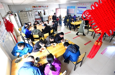 “項目部很貼心,給外地來的家屬準(zhǔn)備了很多過年物資,還給孩子們準(zhǔn)備了玩具?!痹诼毠に奚針窍?,龔飛正帶著孩子們玩耍,她說,這里掛燈籠、貼春聯(lián)、糊窗花,在這里過年感受到了家一般的溫暖,年味濃濃。