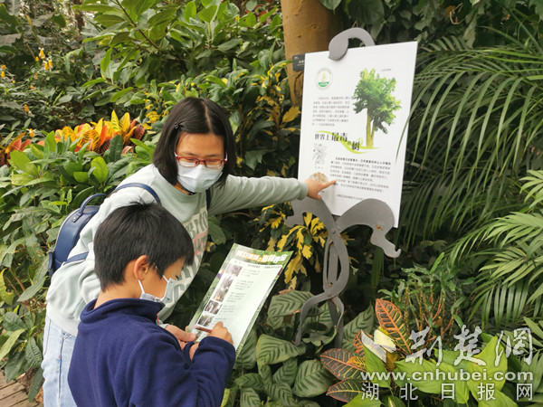 “哇,箭毒木,世界上最毒的樹就是長這樣的嗎?”在千奇百怪、生機(jī)勃勃的熱帶雨林,有很多讓人驚奇的植物。武漢植物園科普老師魏妮娜帶領(lǐng)親子家庭走進(jìn)武漢植物園景觀溫室熱帶雨林室,了解雨林奧秘:“這是龍血樹,會流出褐紅色的汁液。龍血樹是珍貴的藥用植物,是配制活血良藥‘血竭’的主要原料?!彪S后,小朋友發(fā)現(xiàn)一顆大樹的樹干和樹枝上長著鳥巢蕨、蘭花等上10種植物,就像一個“空中花園”。