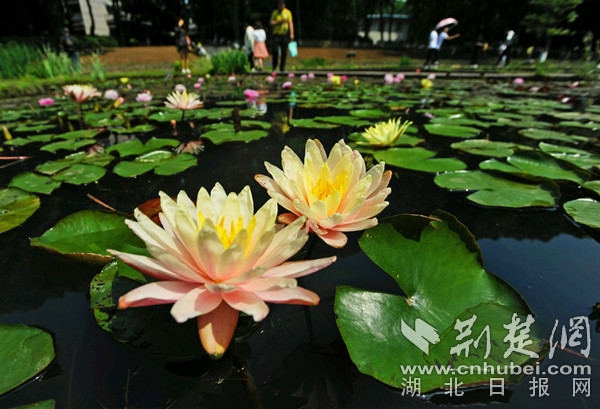睡蓮展示區(qū),“水中女神”已經(jīng)蘇醒,進(jìn)入超長花期。印度紅睡蓮、埃及藍(lán)睡蓮、墨西哥黃睡蓮、中國延藥睡蓮、泰國招財(cái)女神……武漢植物園睡蓮池臥虎藏龍,展示著世界各地的睡蓮名品。仿造睡蓮花瓣建造成的“八色睡蓮池”已經(jīng)上色完畢,紫、藍(lán)、黃、粉、紅,色彩大膽絢爛,如意蘊(yùn)流淌的藝術(shù)家畫作。