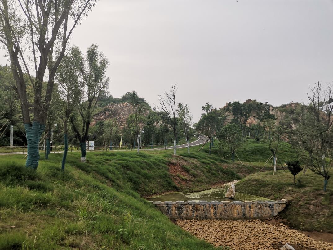 生態(tài)公園里一些低洼處,則被打造成水景旱溪,以三國(guó)故事“群英會(huì)”為靈感,栽植決明子、刺槐、櫸樹等40種以上喬灌木,以樹喻人,打造多品種植物園。