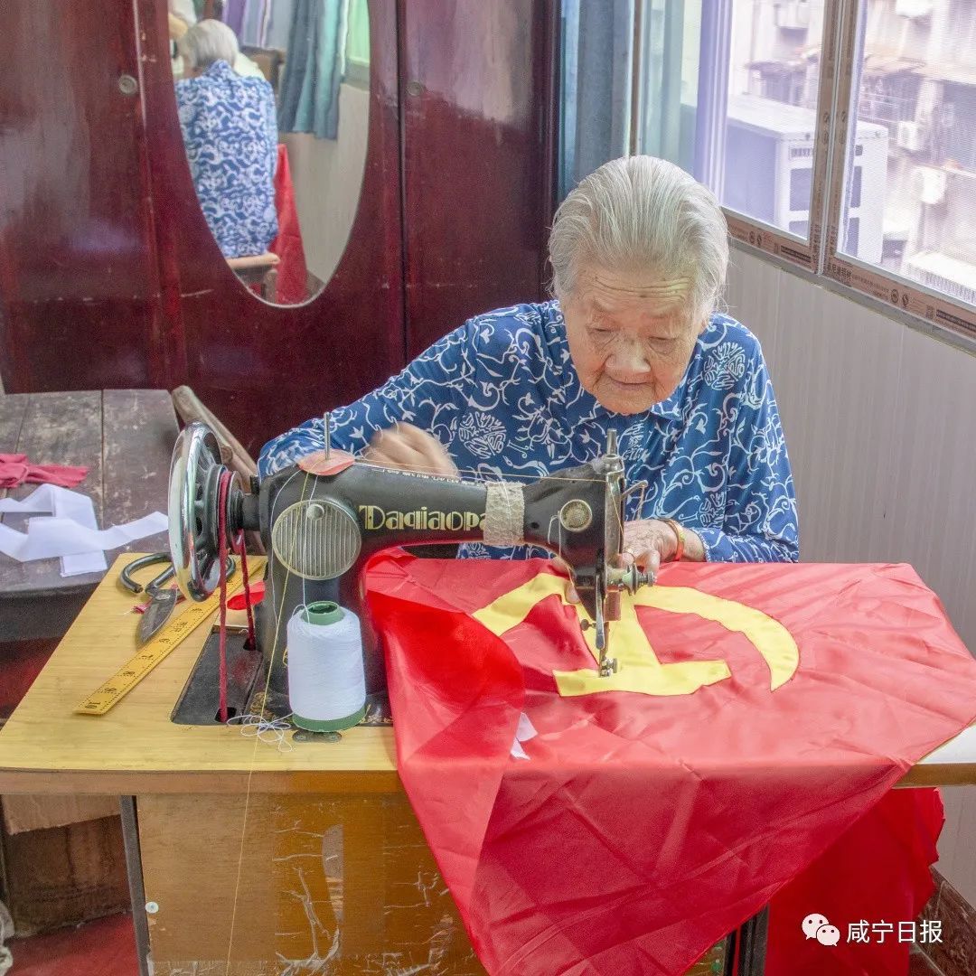 “得共產黨的力,才有今天的好生活。感謝毛主席!感謝共產黨!”6月15日下午,家住咸安區(qū)文筆路社區(qū)的百歲老人毛保玉在家人的陪同下,給區(qū)民政局送去一面親手縫制的黨旗。