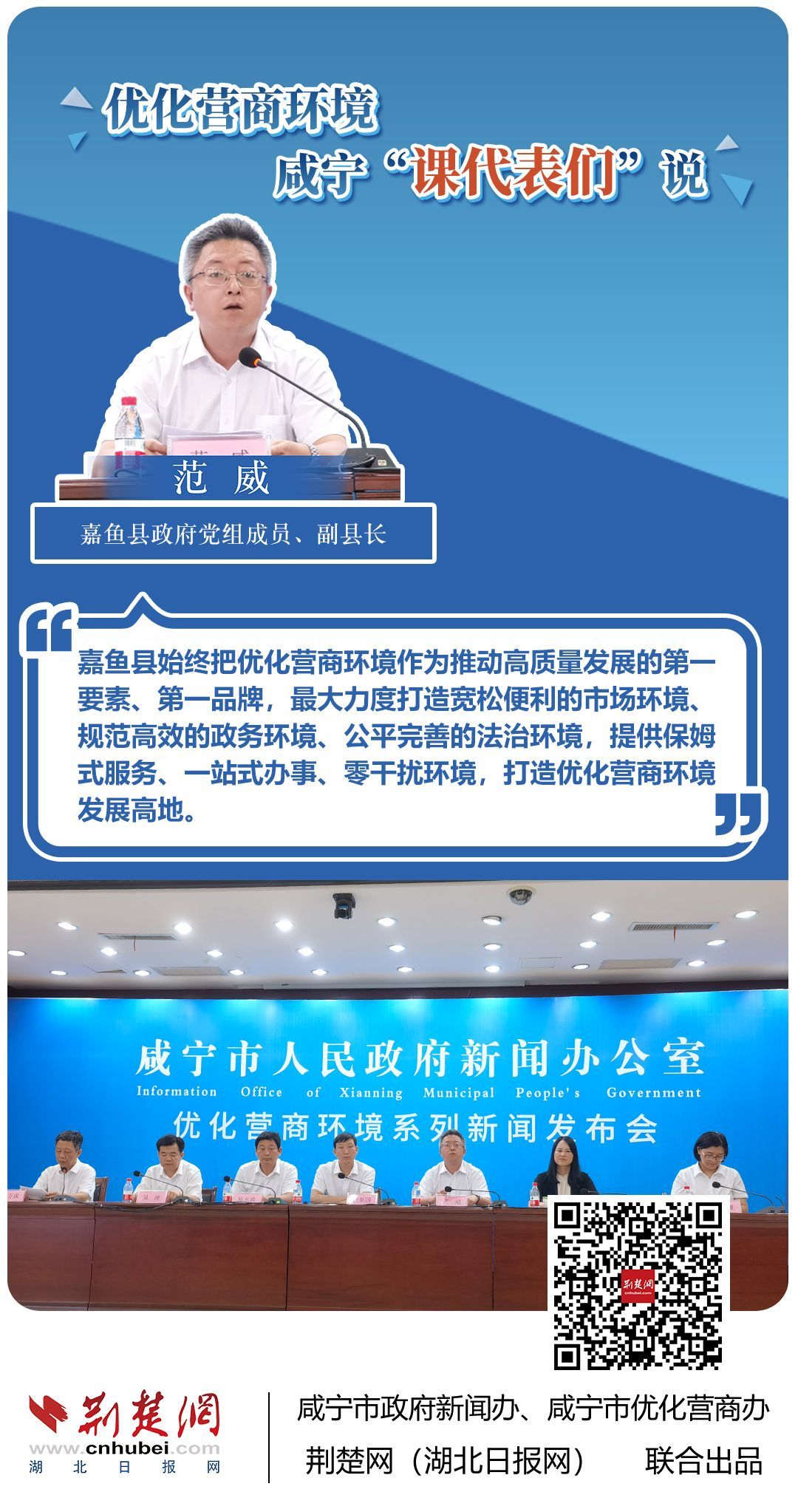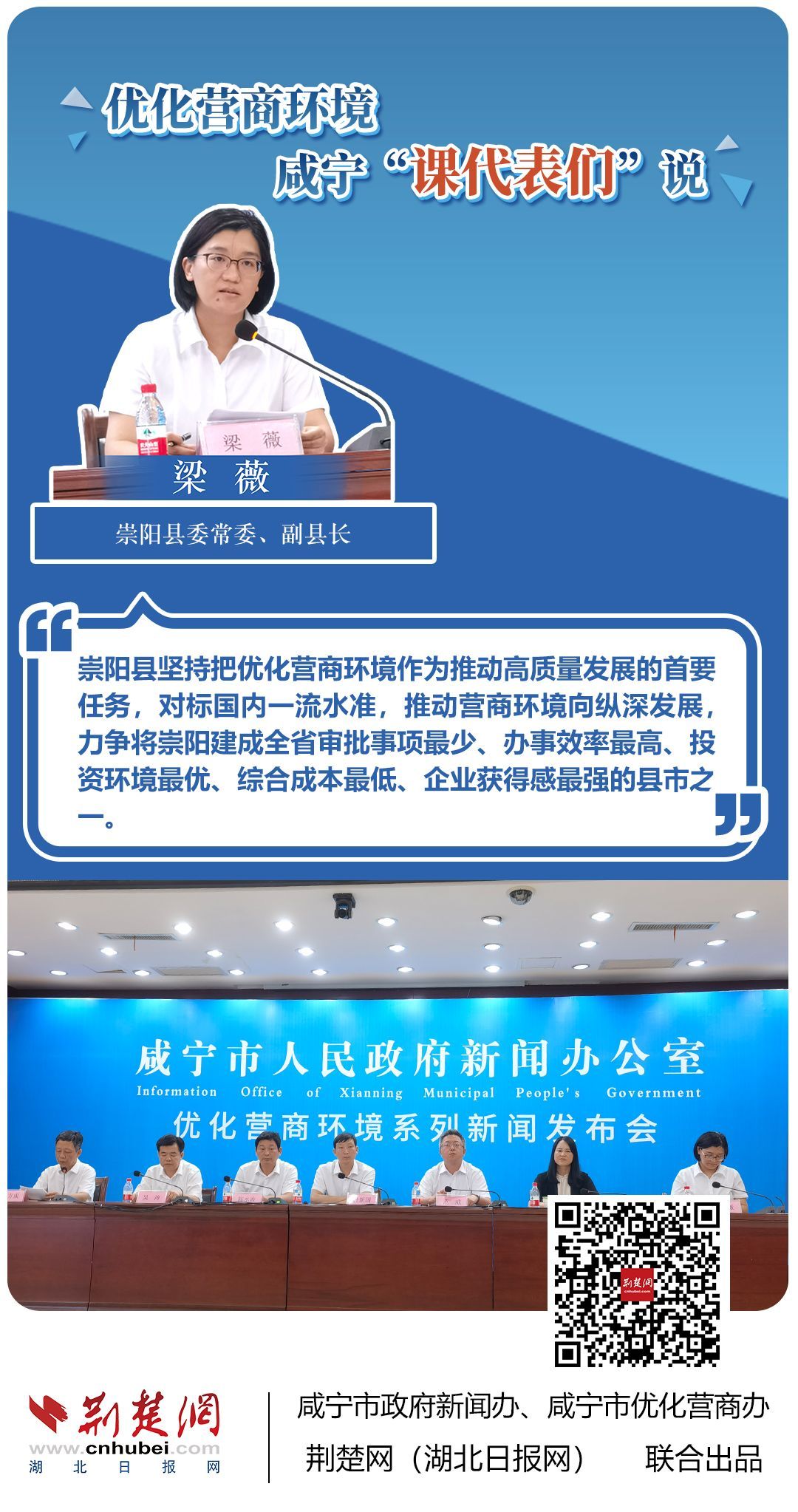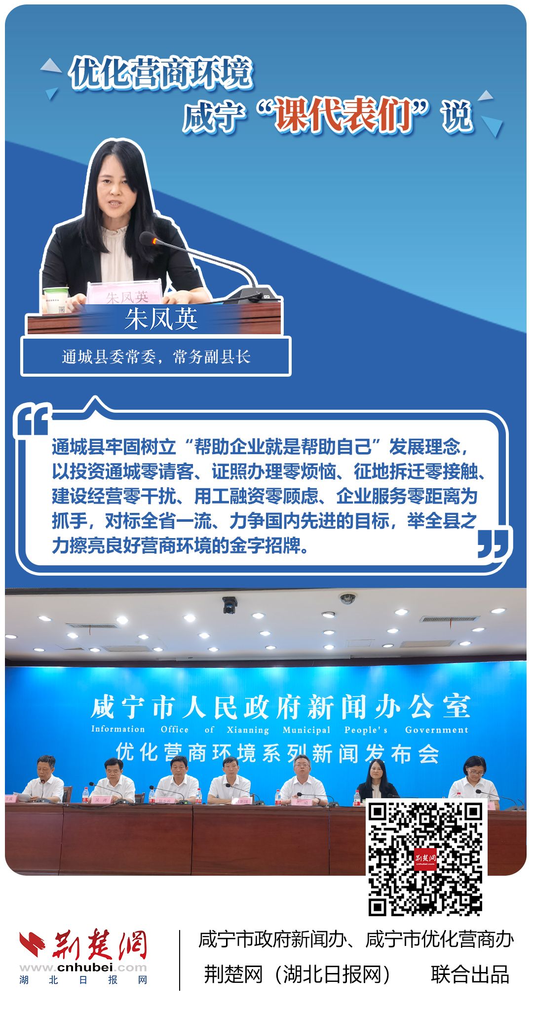 荊楚網(wǎng)(湖北日?qǐng)?bào)網(wǎng))訊(記者 田城 通訊員 孫方成 張永紅)跨省通辦、“零干擾環(huán)境”、最簡(jiǎn)流程優(yōu)服務(wù)、深化“放管服”改革、整肅行風(fēng)政風(fēng)……7月20日下午,咸寧市召開(kāi)優(yōu)化營(yíng)商環(huán)境新聞發(fā)布會(huì)。會(huì)上,咸安區(qū)、嘉魚(yú)縣、赤壁市、通城縣、崇陽(yáng)縣、通山縣6個(gè)縣市區(qū)優(yōu)化營(yíng)商環(huán)境發(fā)言人亮相,全面介紹當(dāng)?shù)貎?yōu)化營(yíng)商環(huán)境有關(guān)情況,持續(xù)推進(jìn)咸寧市營(yíng)商環(huán)境朝著更優(yōu)、更好方向前進(jìn)。
