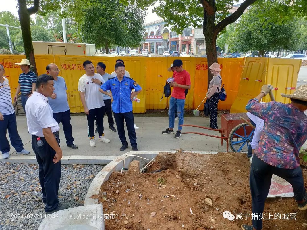 7月29日上午,咸寧市城管執(zhí)法委黨組書記、主任何宏輝帶領(lǐng)咸寧大道“路長責(zé)任網(wǎng)格制”管理員到咸寧大道徒步巡查,徒步巡查從咸寧大道興龍橋起至龍?zhí)稑蛑?,全長約6公里。檢查督辦沿線市容市貌、環(huán)境衛(wèi)生、園林綠化、市政維護(hù)、門前“四包”工作,發(fā)現(xiàn)問題,立行立改,并舉一反三、建章立制。
