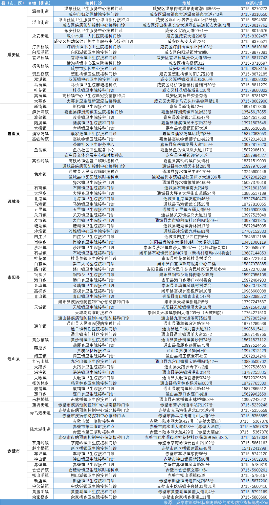 咸寧市新冠疫苗接種門(mén)診(點(diǎn))服務(wù)信息: