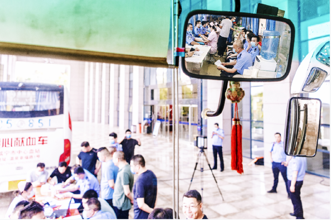 一時間,從局黨委班子成員身先示范,到“白襯衣”一馬當(dāng)先,再到“藏青藍(lán)”接踵而至。不分男女,不論老幼,歷時7小時的獻(xiàn)血活動,不斷有民警持續(xù)加入。有的剛從護校崗位趕回,有的從交通高峰崗趕回,有的篤信自己過硬的身體素質(zhì)執(zhí)意多獻(xiàn)一些……