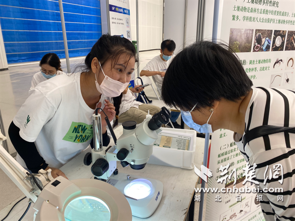 “蚯蚓是人類的好朋友?!眮?lái)自中科院武漢植物園功能生態(tài)組的林小元正在展臺(tái)前指導(dǎo)市民通過(guò)顯微鏡觀察土壤和蚯蚓。她邊調(diào)試儀器邊介紹,蚯蚓是土壤動(dòng)物里最常見(jiàn)類群之一,它們?cè)谕寥郎鷳B(tài)系統(tǒng)中既是“消費(fèi)”者,也是“創(chuàng)造”者,它們通過(guò)取食、消化、排泄、分泌和挖掘洞穴等活動(dòng)對(duì)土壤產(chǎn)生重要影響,被稱為“土壤工程師”。