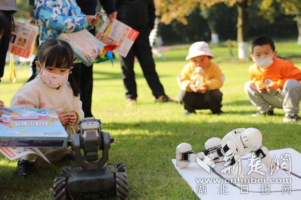 “機器人是在做瑜伽嗎?它們還會跳雙人舞!”隨音樂舞蹈的機器人令小朋友們頗感新奇。華中農(nóng)業(yè)大學(xué)博物館與中國地質(zhì)大學(xué)逸夫博物館展出的動物標(biāo)本、恐龍化石與礦石則吸引了眾多游人的注意力。人們駐足在展位前,領(lǐng)略科學(xué)的美麗。