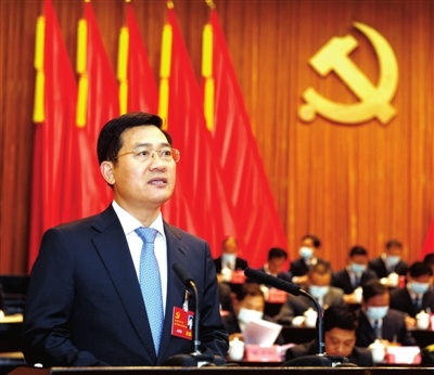 孟祥偉代表中共咸寧市第五屆委員會(huì)向大會(huì)作報(bào)告。 咸寧日?qǐng)?bào)全媒體記者 袁燦 攝