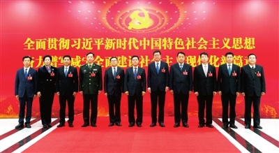 12月7日下午,新當(dāng)選的中共咸寧市第六屆委員會常務(wù)委員會委員集體合影?!∠虒幦請?bào)全媒體記者 袁燦 攝