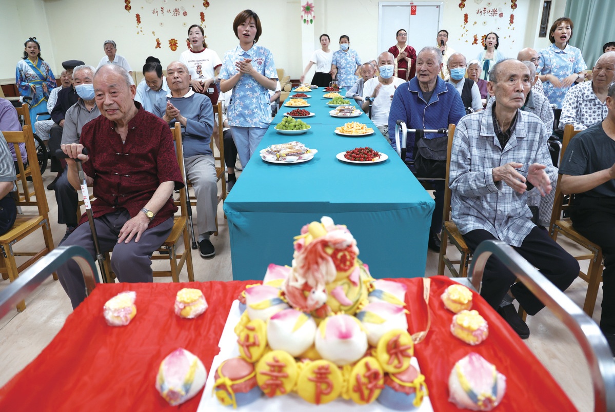 “父親是兒那登天的梯,父親是那拉車(chē)的?!?月15日,在父親節(jié)來(lái)臨之際,在太和和眾養(yǎng)老中心二樓,伴隨著歌曲《父親》的節(jié)奏,護(hù)理人員將入住的父親們推上舞臺(tái),向他們致敬。這是太和和眾養(yǎng)老中心精心策劃的“感恩父親節(jié),讓愛(ài)更長(zhǎng)久”詩(shī)歌朗誦活動(dòng)。當(dāng)天,該中心還給老人們過(guò)集體生日,為老人送上一份特別的關(guān)愛(ài)與溫暖?!鑫?記者 張貞林 圖/記者 張啟國(guó)