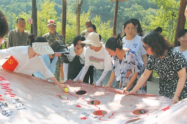 為迎接七一建黨節(jié)和黨的二十大,6月25日,市東風(fēng)小學(xué)組織開展紅色團(tuán)建活動(dòng)。圖為黨員老師在觀摩紅軍長(zhǎng)征路線圖。