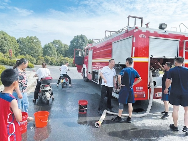 近日,竹溪縣水坪鎮(zhèn)二高山地區(qū)多個行政村群眾飲用水告急,該鎮(zhèn)黨委政府迅速聯(lián)系縣消防大隊,協(xié)調(diào)安排消防車到缺水的村莊,給村民送去飲用水,緩解用水之急。