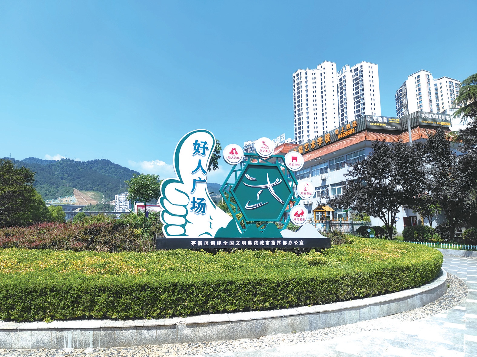 7月8日上午,茅箭區(qū)首個“好人廣場”在賽武當廣場“金桂園”正式開放,廣場上整齊排列著十余塊好人事跡宣傳牌。茅箭區(qū)城市文明創(chuàng)建中心結合茅箭區(qū)文明典型宣傳,把“好人廣場”作為展示茅箭精神文明建設成果的窗口,讓市民在休閑散步中,領略好人風范、感受道德力量。