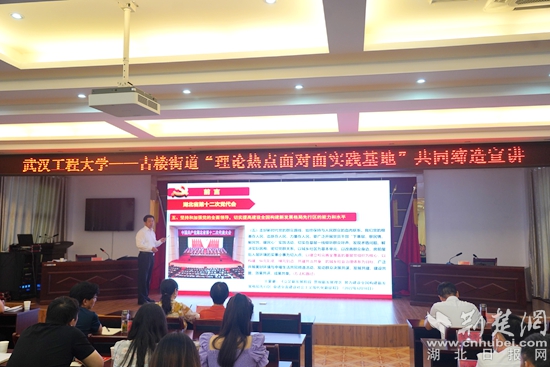 荊楚網(wǎng)(湖北日報(bào)網(wǎng))訊(通訊員丁元中)7月25日上午,武漢工程大學(xué)馬克思主義學(xué)院院長曹勝亮一行17名專家教授到鄂城區(qū)古樓街道“理論熱點(diǎn)面對面實(shí)踐基地”開展共同締造宣講活動(dòng)。