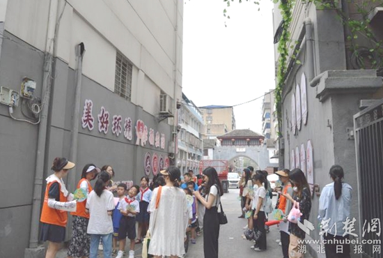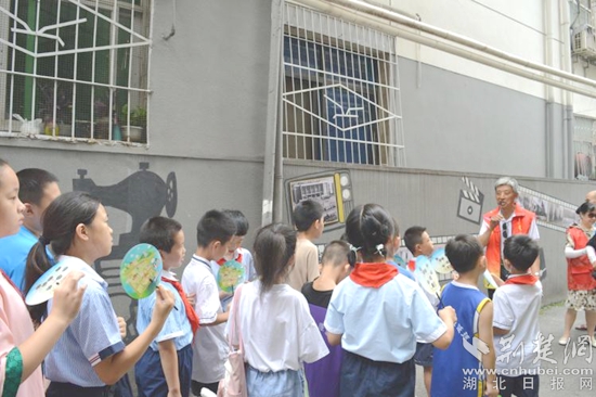早上9時(shí),大家來(lái)到老公安局小區(qū)歷史文化長(zhǎng)廊研學(xué)點(diǎn),小朋友們?cè)谏绻さ膸ьI(lǐng)下井然有序地聽(tīng)取“紅領(lǐng)巾”小小講解員張景婷講述著“老公安局小區(qū)是古樓街歷史上繁華的一個(gè)商業(yè)中心,曾經(jīng)在明朝和清朝兩代570多年,這里是武昌縣衙門的所在地......”的歷史,大家仿佛看見(jiàn)了那個(gè)熱火朝天的時(shí)代。
