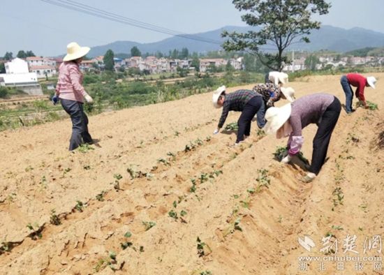 今年3月20日,該公司與該鎮(zhèn)毛畈村簽訂農(nóng)業(yè)訂單,按照“三統(tǒng)一分”(統(tǒng)一供苗、統(tǒng)一技術(shù)指導(dǎo)、統(tǒng)一保底價(jià)回收,分戶種植)模式,在毛畈村建立300畝紅苕種植基地。