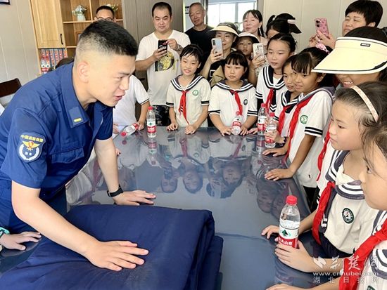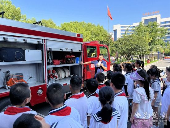 當(dāng)天,來自白馬山小學(xué)和有色小學(xué)的150余名小朋友帶著好奇、帶著期待走進(jìn)黃石市下陸區(qū)消防救援大隊(duì),與消防員叔叔零距離接觸,學(xué)習(xí)消防知識,感受消防魅力。