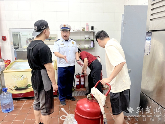 期間,檢查人員重點(diǎn)檢查了場所內(nèi)消火栓和滅火器是否完好有效、燃?xì)鈭缶b置運(yùn)行是否正常、廚房燃?xì)廛浌苁欠穹弦蟆⑷細(xì)夤芫€和閥門等設(shè)備是否存在老化、油煙管道及灶具是否定期清理、有無亂搭亂接大功率插頭和電線、場所從業(yè)人員是否掌握消防安全常識和撲救初起火災(zāi)的能力等情況。